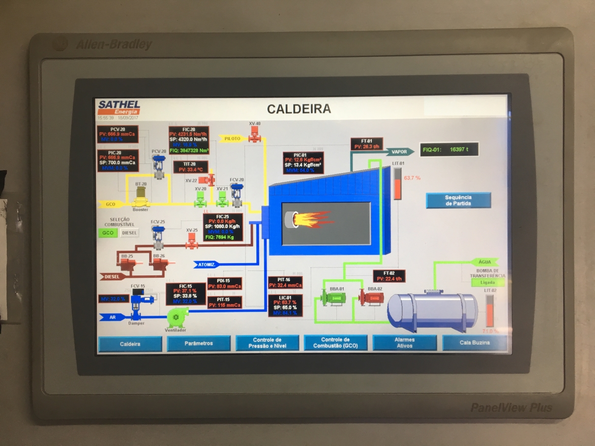 Fabricante da Caldeira: BABCOCK & WILCOX, Revisão: SATHEL Energia S.A. – Equipamentos & Serviços, Modelo: FM 120-97, Tipo de Caldeira: Compacta – Aquotubular, Ano de Fabricação: 2004, Produção Nominal de Vapor da Caldeira com Gás Natural: 57,6 t/hora, GOC: 40 t/hora e Diesel, Pressão de Teste Hidrostático: 94 kg/cm², Pressão de Projeto: 70 kg/cm², Pressão de Operação Solicitada: 16 kg/cm², Temperatura do Vapor: Superaquecido a 400ºC, Combustível: GOC E Diesel, Rendimento Térmico a Gás ao PCI: Eficiência, Aproximada 84% ou 90%, Percentual de CO2: 13% a 14%, Percentual de O2: 2% a 4%, Tensão dos Motores: 440 V, Tensão de Comando: 110 V, Instalação: Semi-abrigada.