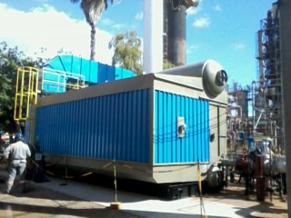Fabricante da Caldeira: BABCOCK & WILCOX, Revisão: SATHEL Energia S.A. – Equipamentos & Serviços, Modelo: FM – 103-79, Tipo de Caldeira: Compacta – Aquatubular, Produção Nominal de Vapor da Caldeira: 32 t/hora, Pressão de Teste Hidrostático: 57 kg/cm², Pressão de Projeto: 37 kg/cm², Pressão de Operação Solicitada: 12 kg/cm², Temperatura do Vapor: Superaquecido a 400ºC, Combustível: Gás Natural, Rendimento Térmico a Gás ao PCI: Eficiência, Aproximada 84% ou 90%, Percentual de CO2: 13% a 14%, Percentual de O2: 2% a 4%, Tensão dos Motores: 440 V, Tensão de Comando: 110 V, Instalação: Semi-abrigada.