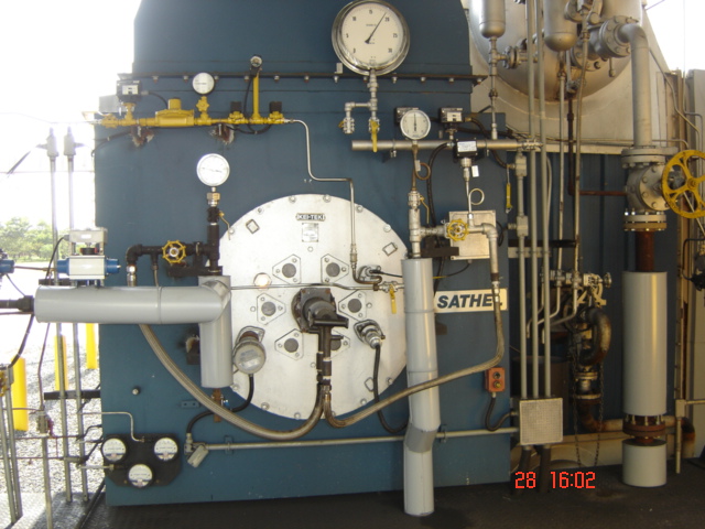 Fabricante da Caldeira: BABCOCK & WILCOX, Revisão: SATHEL Energia S.A. – Equipamentos & Serviços, Modelo: FM – 103-79, Tipo de Caldeira: Compacta – Aquatubular, , Produção Nominal de Vapor da Caldeira com Gás Natural: 32 t/hora, Pressão de Teste Hidrostático: 57 kg/cm², Pressão de Projeto: 37 kg/cm², Pressão de Operação Solicitada: 17,6 kg/cm², Temperatura do Vapor: Superaquecido a 400ºC, Combustível: Óleo BPF, Rendimento Térmico ao PCI: Eficiência, Aproximada 84% ou 90%, Percentual de CO2: 13% a 14%, Percentual de O2: 2% a 4%, Tensão dos Motores: 440 V, Tensão de Comando: 110 V, Instalação: Semi-abrigada.